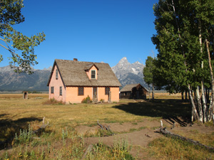 ティトン連山を望む景色のいい所に19世紀に入植したモルモン教徒の住居や納屋の建物が残っています。 小川も流れて素敵な所ですが、当時は生活するには大変だったようです。