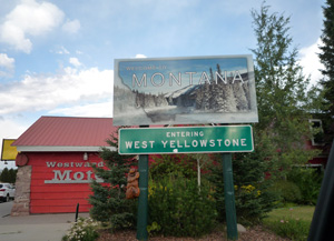 | 宿泊したウェストイエローストーンのステージコーチインから1.3kmでイエローストーン国立公園 | イエローストーン国立公園の ウエストエントランス もう少し先からワイオミング州です。 |